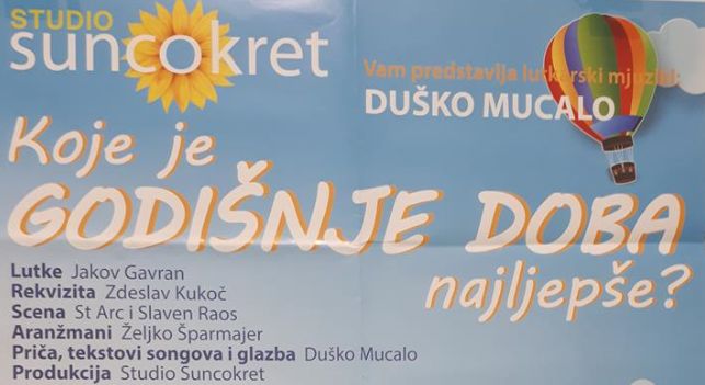 Lutkarski mjuzikl Koje je godišnje doba najljepše? za naše najmlađe. U petak 09.03. s početkom u 09:30 sati, cijena predstave je 20,00 kuna.