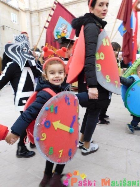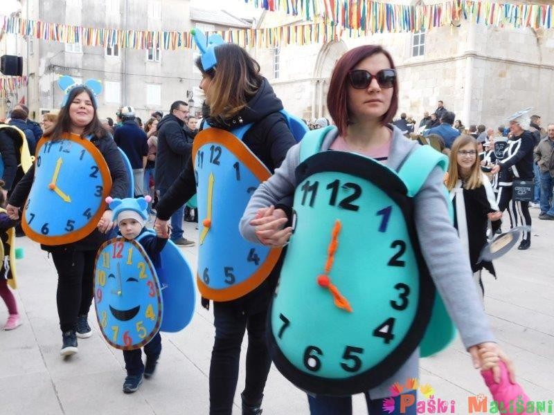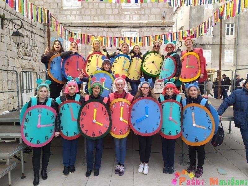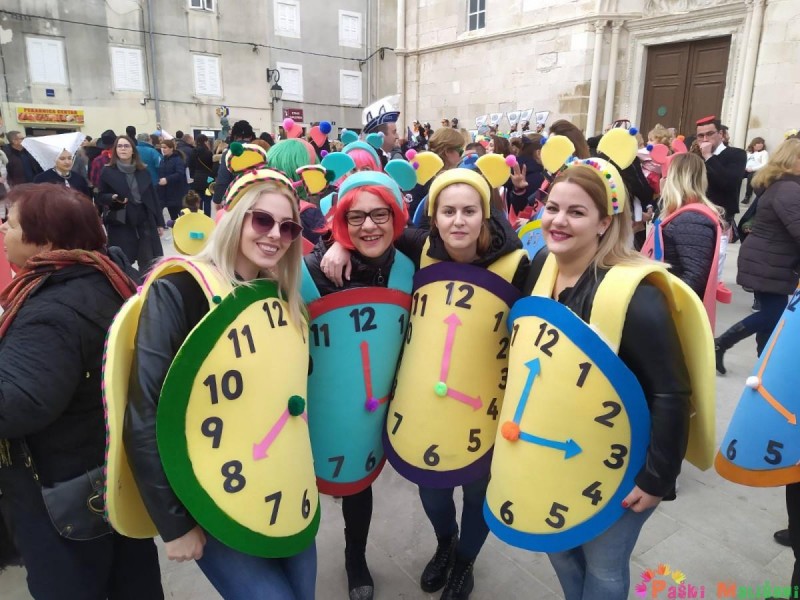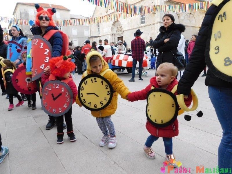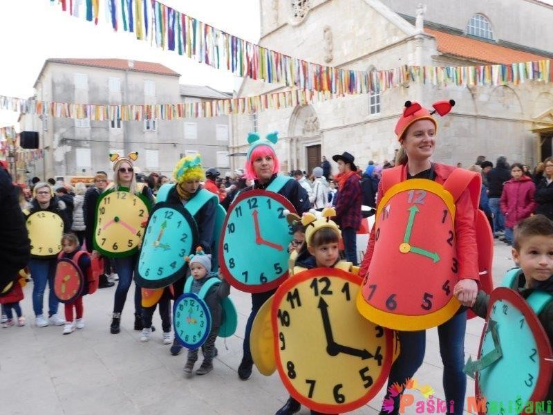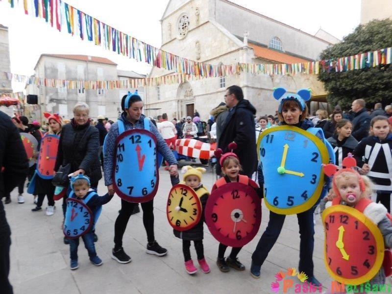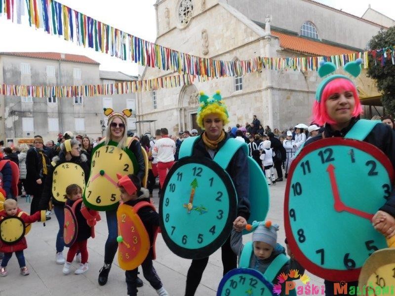 U veseloj karnevalskoj povorci održanoj u nedjelju, 23. veljače 2020. godine, sudjelovala su djeca iz Dječjeg vrtića Paški mališani, njihovi roditelji i odgojiteljice. Svi su oni ponosno nosili istu masku, a ove godine su to bili satovi – budilice, odnosno „ žvajarini “. Djeca iz Paga, kao i iz područnog objekta u Povljani, okupila su se na trajektnom pristaništu, odakle je krenula velika povorka, u kojoj su sudjelovala sve do okupljanja svih maskiranih grupa na glavnom gradskom trgu, gdje je uslijedio ostatak programa.