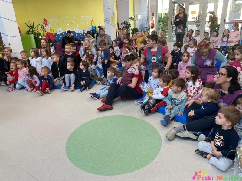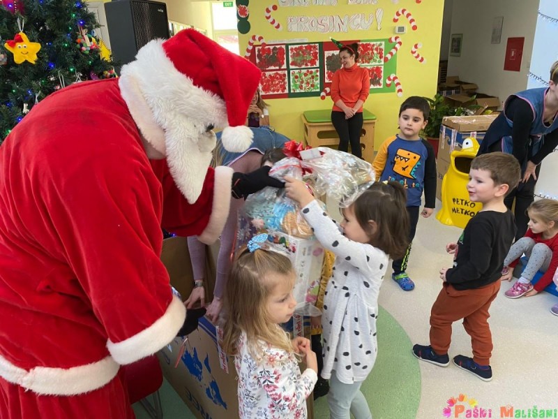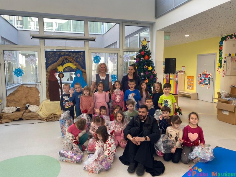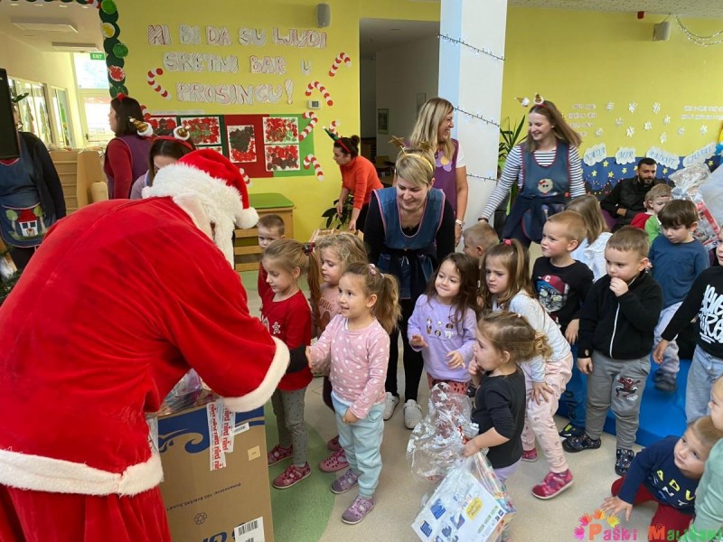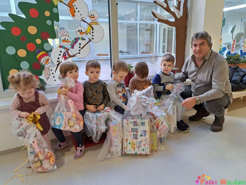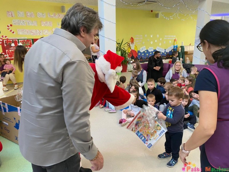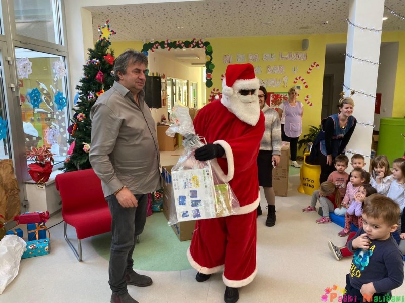 Nakon blagoslova u vrtić je stigao Djed Mraz koji je zajedno za gradonačelnikom Antom Fabijanićem darovao djecu poklonima. Božićne poklone za djecu matičnog objekta financirao je Grad Pag.