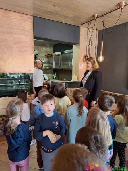 Tamo ih dočekala obitelj Valentić te su djecu upoznali sa djelatnošću ugostiteljstva i zanimanjima kuhar i konobar. Bila je to prilika za nove doživljaje i učenje o zanimanjima u ugostiteljstvu, a djeci je bilo posebno zanimljivo jer su imali priliku sve doživjeti „iz prve ruke“. Nakon toga su probali razna ukusna jela pripremljena samo za njih, na meniju se našla juha, razno meso i prilozi, salate, a za kraj su se počastili palačinkama. Zahvaljujemo se obitelji Valentić i djelatnicima restorana Na Katine na suradnji i divnom iskustvu.