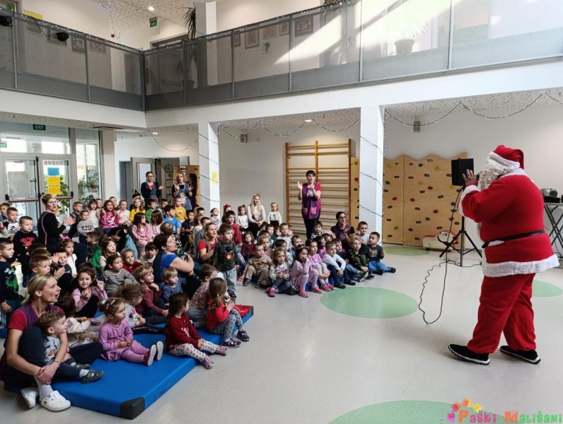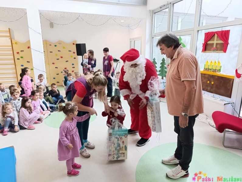 Nakon blagoslova u vrtić je stigao Djed Mraz koji je zajedno za gradonačelnikom Antom Fabijanićem darovao djecu poklonima. Božićne poklone za djecu matičnog objekta financirao je Grad Pag.