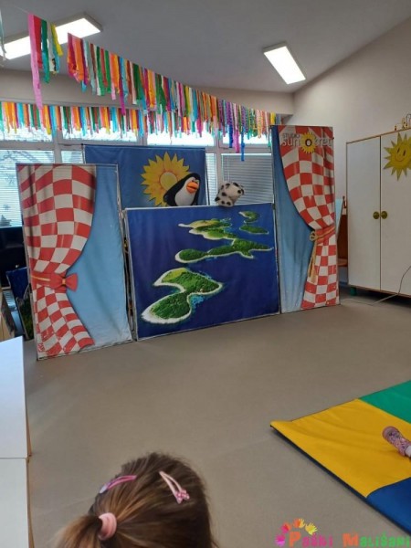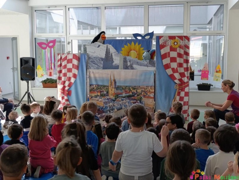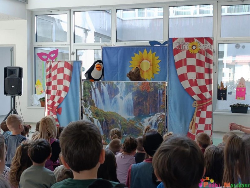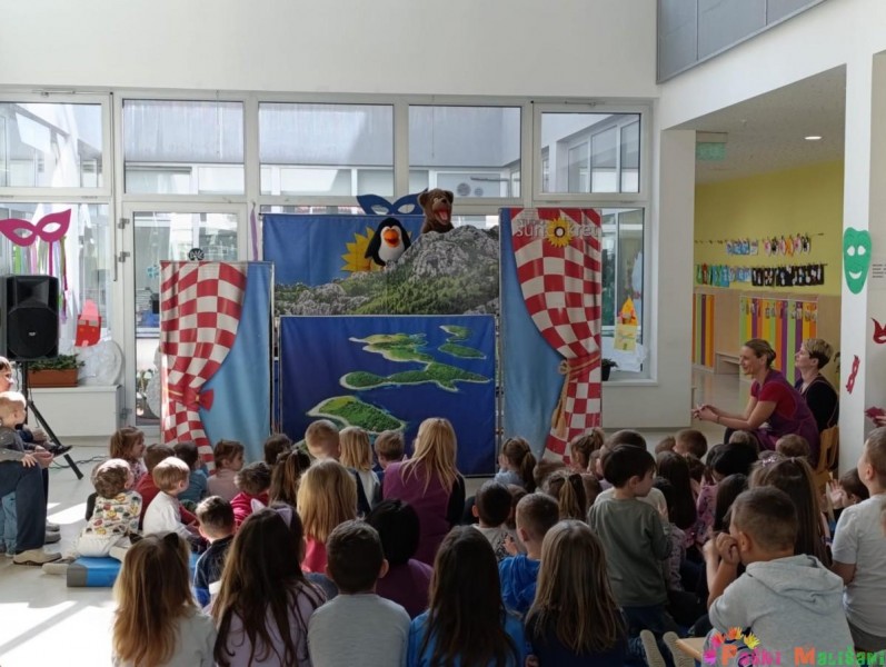 U četvrtak 6.3. u matičnom i područnom objektu vrtića održana je edukativna lutkarska predstava Studija Suncokret pod nazivom „Pingvin u Hrvatskoj“. Preko Dalmacije i tisuću otoka, Plitvičkih jezera, planina i nizina, Istre, Gorskog kotara, Zagreba, Zagorja i Slavonije, pingvin se susreće sa novim prijateljima: psom dalmatincem, ličkim medvjedom, orlom, istarskom kozom, vjevericom Zagi i konjem lipicancem.