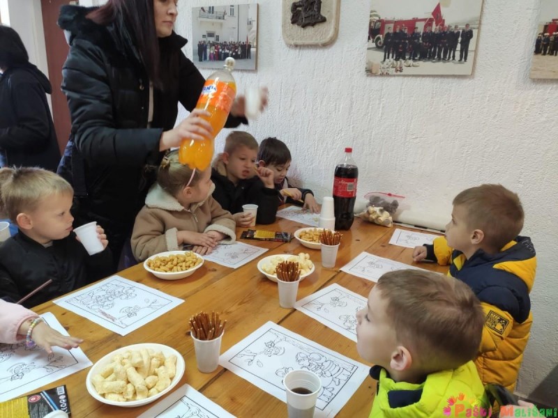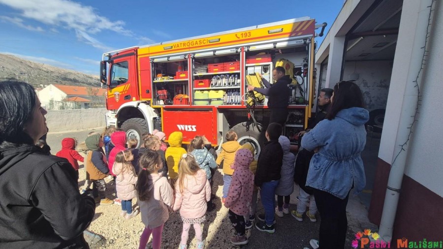 Djeca su s nestrpljenjem dočekala vatrogasce koji su ih oduševili svojim odijelima i opremom. U dvorišnom prostoru ispred vatrogasne garaže dočekao nas je i pozdravio zapovjednik Karlo Bukša sa kolegama vatrogascima. Upoznali su nas sa svojim zanimanjem, prezentirali su djeci kako se koriste i čemu služi vatrogasna oprema s kojom izlaze na intervencije. Djeca su imala priliku izbliza pogledati vatrogasnu opremu, isprobati kacige, voki- tokije. Vatrogasci su im pokazali kako koriste vatrogasno crijevo i pustili vodu, a posebno oduševljenje nastalo je kada su i oni sami mogli koristiti vatrogasno crijevo kojim su pokušali „ugasiti požar“. Po završetku druženja vatrogasci su za djecu pripremili grickalice i sokove, te malu likovnu radionicu sa vatrogasnom tematikom. Sve navedene aktivnosti doprinijele su kvalitetnom upoznavanju djece sa zanimanjem vatrogasca, a neka su izrazila želju da će, kad narastu, i sami postati vatrogasci. Po završetku posjeta, vatrogasci su nas svojim vozilima uz pratnju sirena vratili u vrtić. Zahvaljujemo se JVP-u Pag na interaktivnoj i edukativnoj vatrogasnoj edukaciji te im želimo puno sreće i hrabrosti u daljnjem radu.