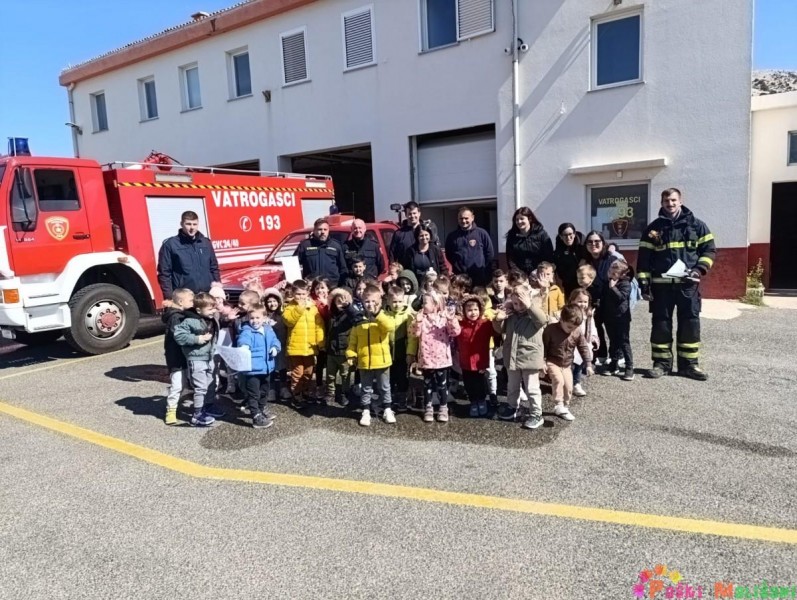 Povodom 90. godišnjice Dobrovoljnog vatrogasnog društva Pag u sklopu Dana otvorenih vrata, skupine Pužići i Žabice posjetile su Javnu vatrogasnu postrojbu Pag. Posjet je započeo dolaskom vatrogasaca u vrtić po djecu i odgojiteljice koji su nas u vatrogasnim vozilima odvezli do svoje postrojbe.