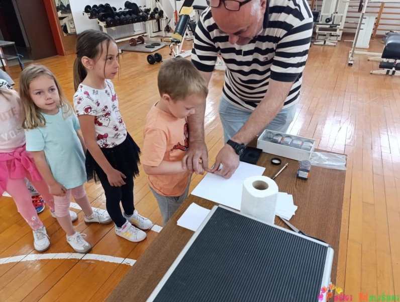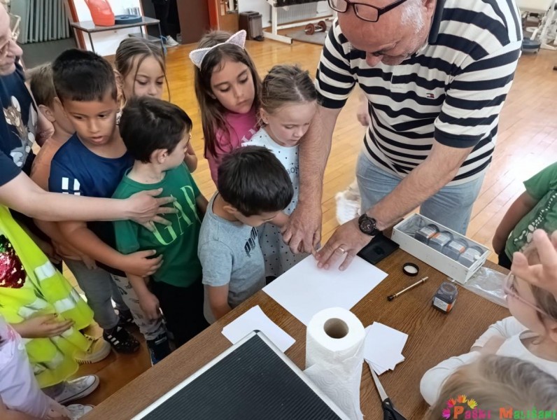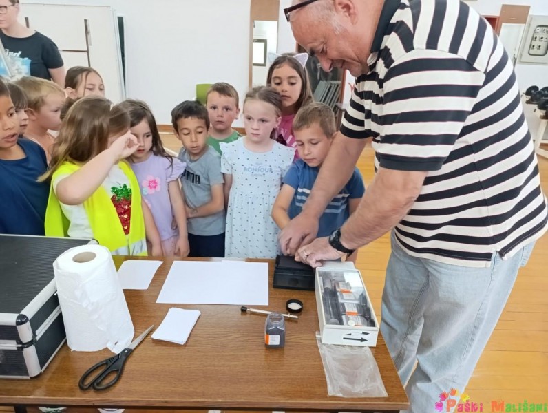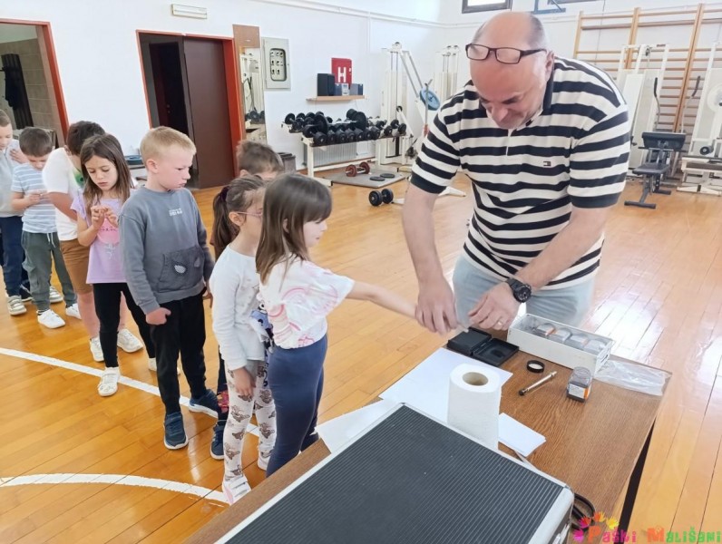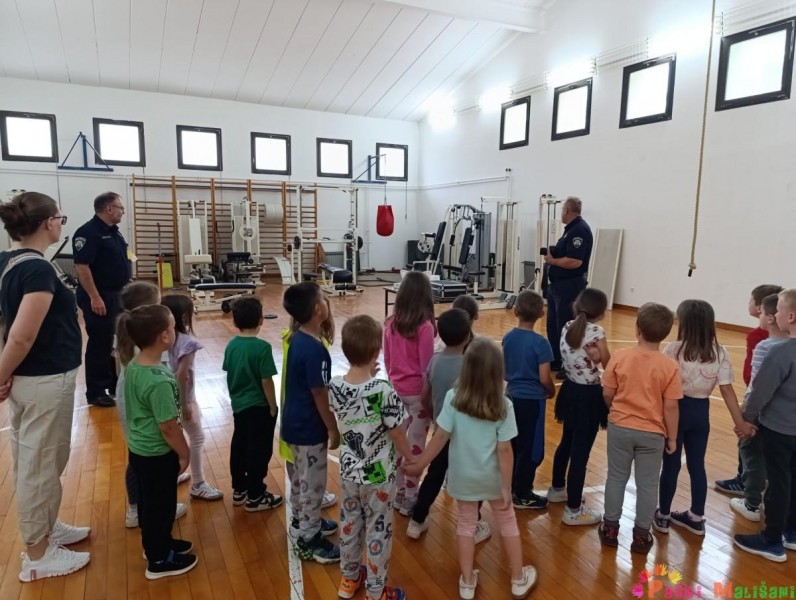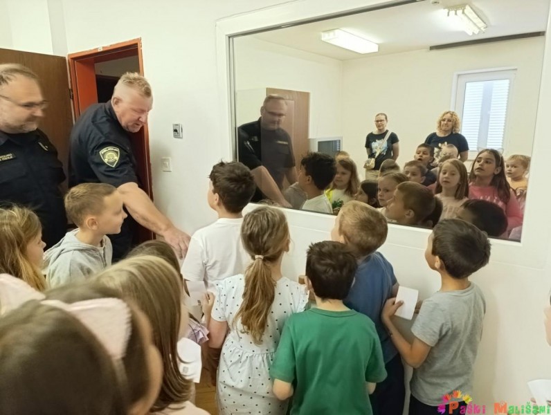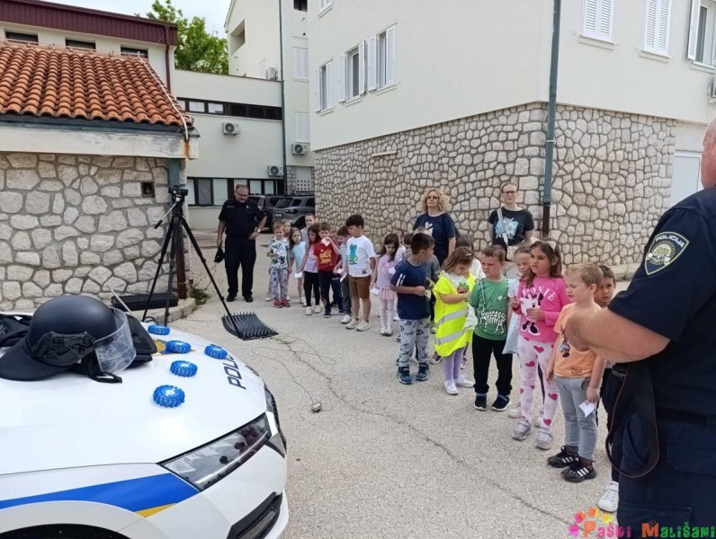 Obišli su cijelu policijsku postaju i saznali koji se dokumenti mogu napraviti u policiji, primjerice osobna iskaznica, putovnica, vozačka dozvola i sl. Kasnije su imali priliku razgledati prostorije za pritvor, prostorije za davanje iskaza te prostoriju za svjedoke sa jednostranim staklom. Svako dijete imalo je priliku doživjeti uzimanje otiska prsta te razgovarati na razglas policijskog vozila. Za kraj posjeta upoznali su policijska vozila i opremu koju svaki policajac mora imati, npr. kacigu, zaštitni prsluk, lisice i sl. Zahvaljujemo se PP Pag na edukativnom i zabavnom druženju, s kojeg se djeca vraćaju puna doživljaja i novih saznanja.