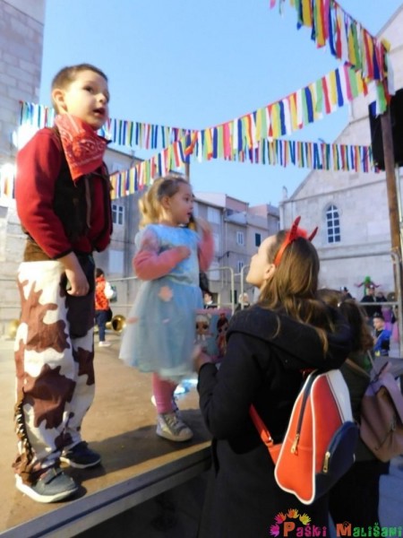 Drugog dana Paškog karnevala održanog na središnjem gradskom Trgu, u ponedjeljak 24. veljače 2020 godine, sudjelovala su djeca srednje skupine Boje i starije skupine Peružini sa prigodnim programom.