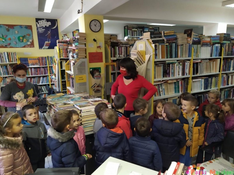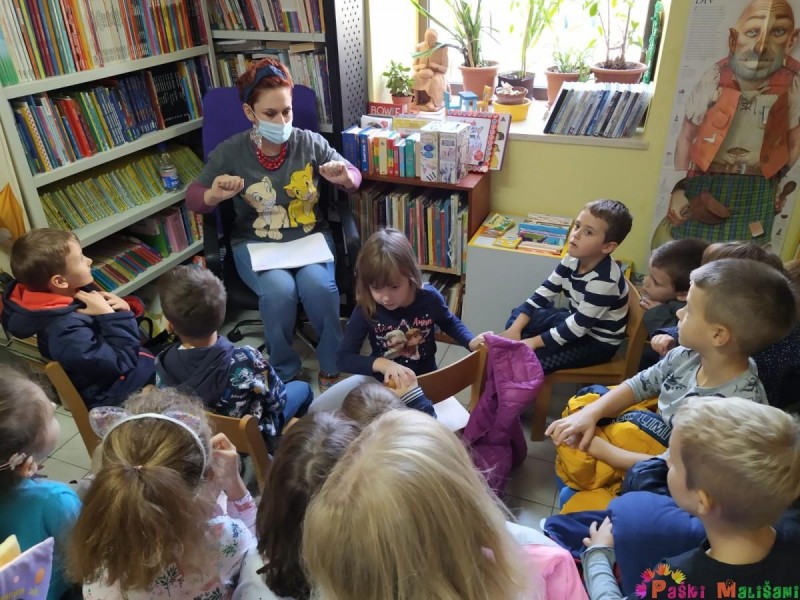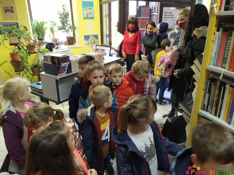 Povodom obilježavanja Mjeseca hrvatske knjige, skupine Loptice i Zvjezdice posjetile su Gradsku knjižnicu Pag gdje su nas dočekale knjižničarka Ljiljana Festini i gospođa Ana Fabijanić.