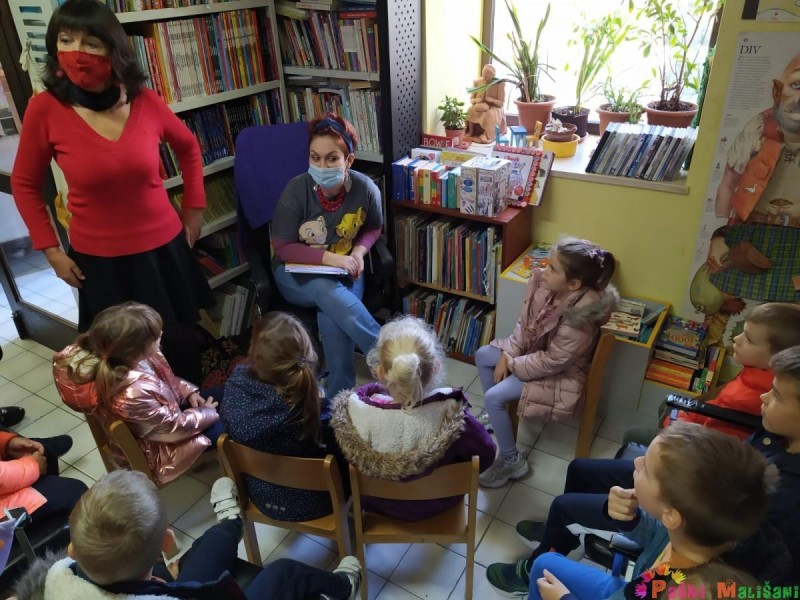 Knjižničarka nam je ispričala što se sve može u knjižnici raditi, kako se posuđuju knjige i kako ih treba čuvati. Nakon toga, gospođa Ana Fabijanić nam je predstavila svoju slikovnicu „Mačak Ručak“, a nakon priče, pročitala nam je i nekoliko svojih pjesama. Također, strpljivo je odgovarala na sva pitanja i pozvala djecu da se učlane se u knjižnicu, potiču svoje roditelje da im čitaju te da svojim prijateljima za rođendan umjesto igračke poklone knjigu. U znak zahvalnosti djeca obje skupine pripremila su crteže za gospođu Anu i plakat za knjižnicu. Ovim posjetom nastavlja se dugogodišnja suradnja našeg vrtića i Gradske knjižnice Pag, a sve u svrhu promicanja čitanja i pričanja priča koji pomažu cjelokupnom razvoju djeteta.
