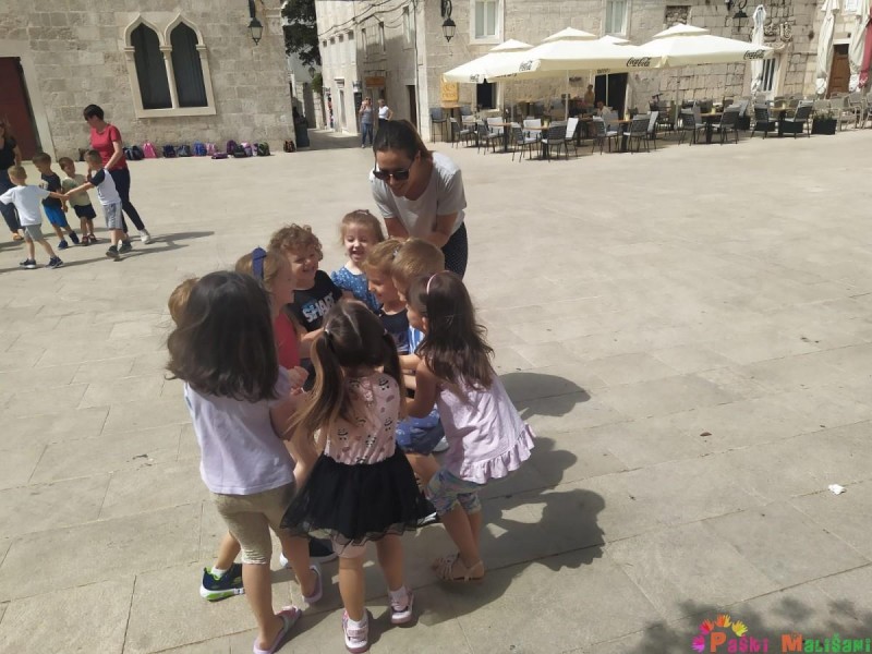 Druženje se nastavilo u petak ujutro na gradskom trgu u Pagu gdje su djeca starije skupine Loptice i Zvjezdice iz DV Paški mališani izvela nekoliko recitacija, a nakon toga su nastupila i djeca starije skupine Loptice iz DV Petrinjčica uz pjesmu i recitaciju. U suradnji sa Čistoćom Pag d.o.o. djeca su imala priliku razvrstavati otpad uz pomoć Gospodina Otpadića i zaposlenike Čistoće Pag. Za kraj programa dječji zbor Vijolice rasplesao nas je sa nekoliko pjesama. Nakon završenog programa na Gradskom trgu nastavili smo druženje s našim gostima u vrtiću uz ručak i kavu, kolače te slobodne aktivnosti djece.