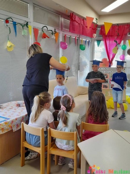 Djeca su svoja završnu svečanost uveličala prigodnim pjesmicama, recitacijama, plesom. Naposljetku su se počastili raznim slasticama i tortom uz druženje sa svim uzvanicima. Njihove odgojiteljice su im se obratile s par riječi zahvale te uz najljepše zelje poželjele puno sreće u novim pustolovinama.