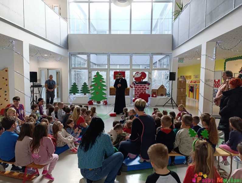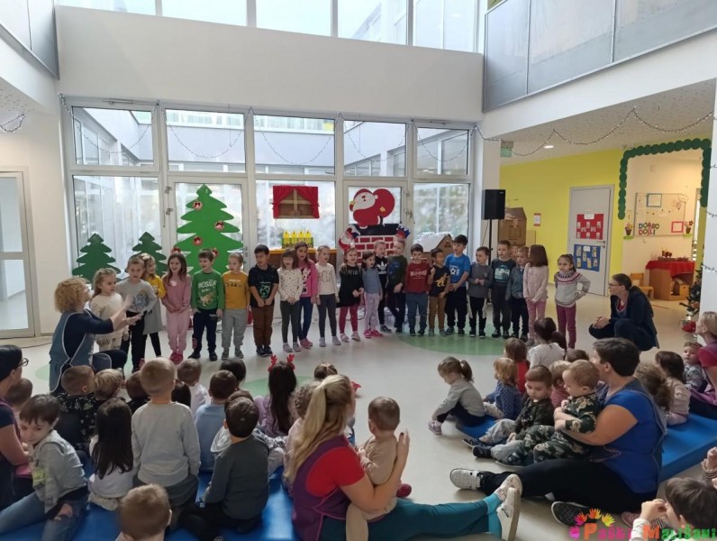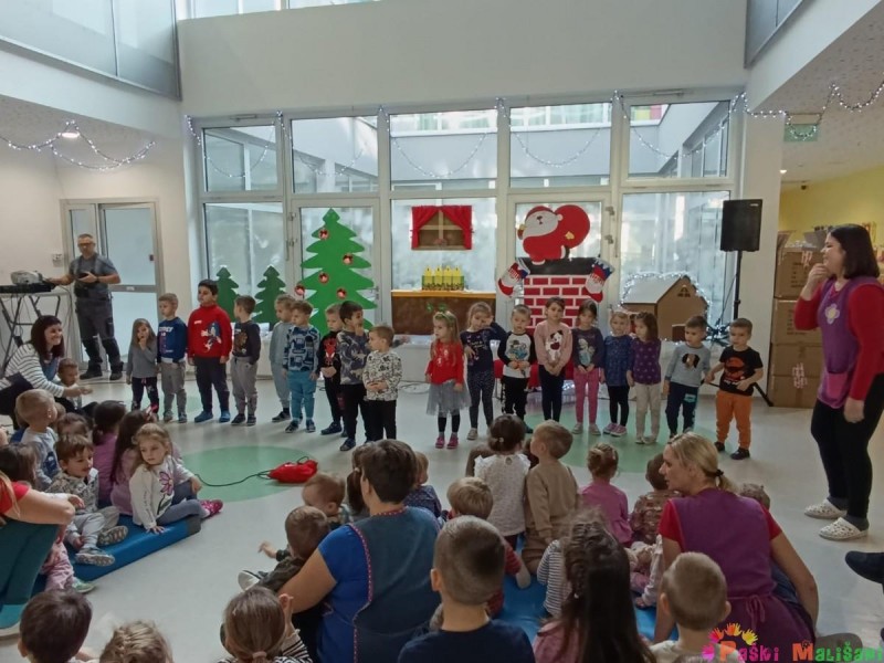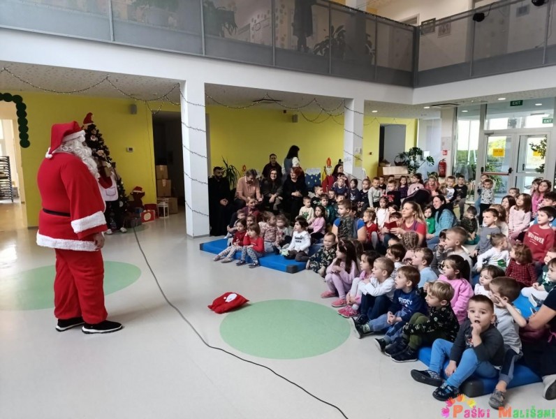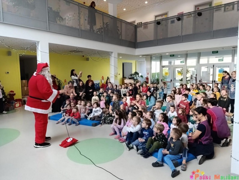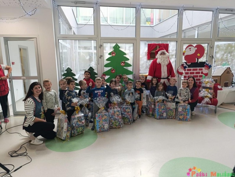 Nakon blagoslova u vrtić je stigao Djed Mraz koji je zajedno za gradonačelnikom Antom Fabijanićem darovao djecu poklonima. Božićne poklone za djecu matičnog objekta financirao je Grad Pag.