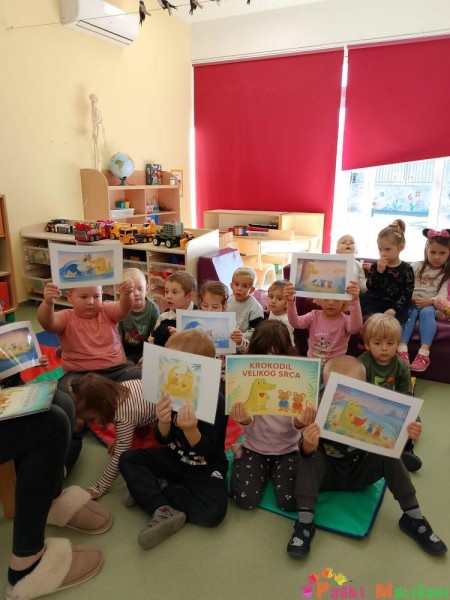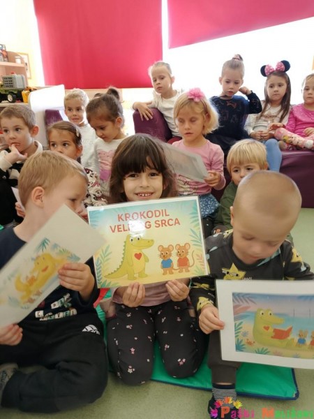 U suradnji sa odgojiteljicama pripremila je i djeci pročitala priču "Krokodil velikog srca" koja govori o prijateljstvu. Nakon pročitane priče djeca su sudjelovala u likovnoj radionici izrade plakata, crteža i dramatizaciji lutkama na istoimenu priču.