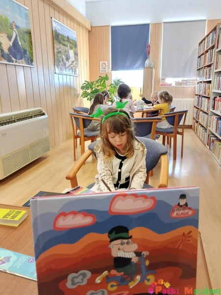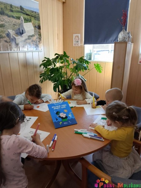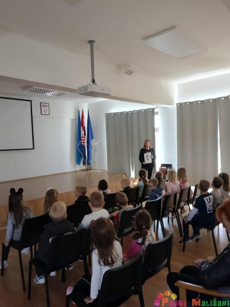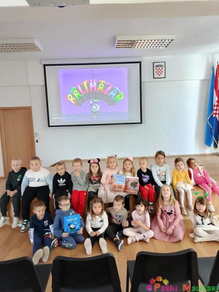 Knjižničarka Ana za početak je pročitala slikovnicu „Baltazar mora spasiti more“. Nakon čitanja slikovnice djeca su na velikom platnu pogledala i animaciju istoimene slikovnice, a posjet je završio sa likovnim aktivnostima.