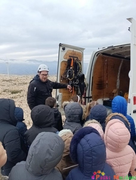 Saznali smo koliko su vjetrenjače visoke, koliko su im duge lopatice, koji vjetar je najbolji za rad vjetrenjača i još mnogo zanimljivih informacija. Također smo imali priliku pogledati i isprobati sigurnosnu opremu koja je potrebna za rad na vjetrenjačama.